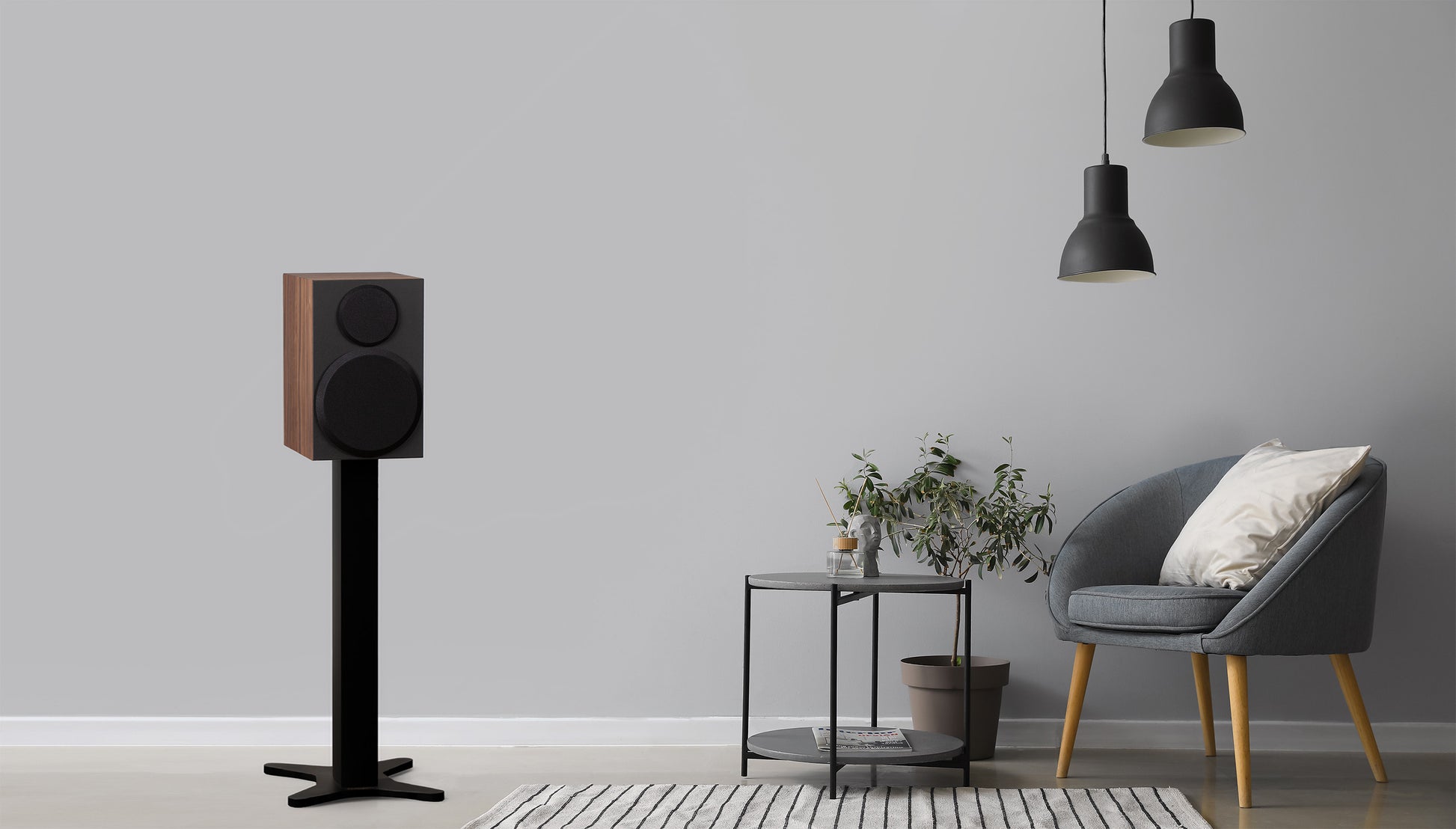 Produceret i Danmark med ægte træfiner og linoleumsfront. Trådløs højttaler med indbygget forstærker og intelligent rumkorrektion, der sikrer imponerende lyd i et lille format.